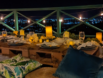 Relish a gourmet lunch or sunset dinner amid a sumptuous setting filled with pillows, flowers, and music